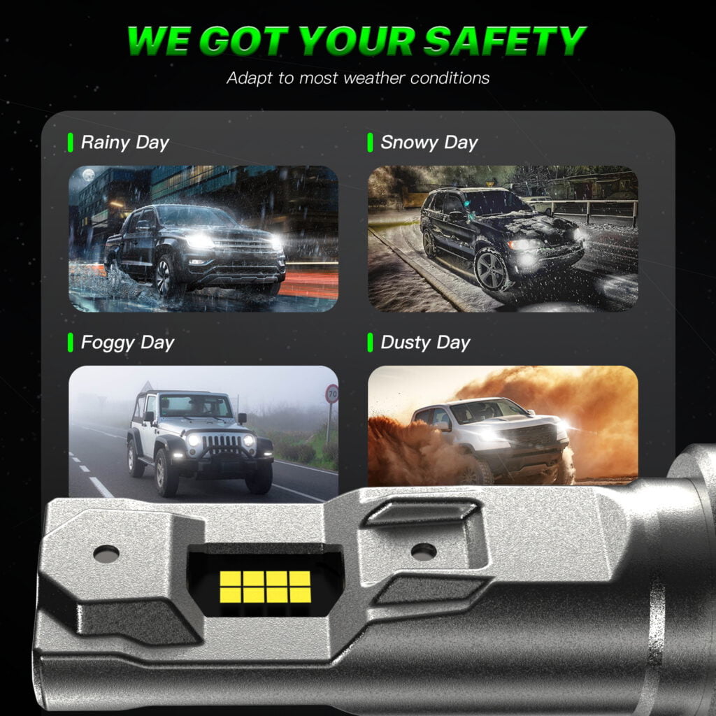 FateEye A700-F11-9005 to prawdziwa potęga oświetlenia, oferująca niesamowitą moc 70W (2 x 35W) przy napięciu 12V – 17V. Te żarówki są wyposażone w diody CSP ULTRA LED CHIP 3570, które generują ogromne 20,000 Lumenów na parę, zapewniając potężne oświetlenie na drodze.