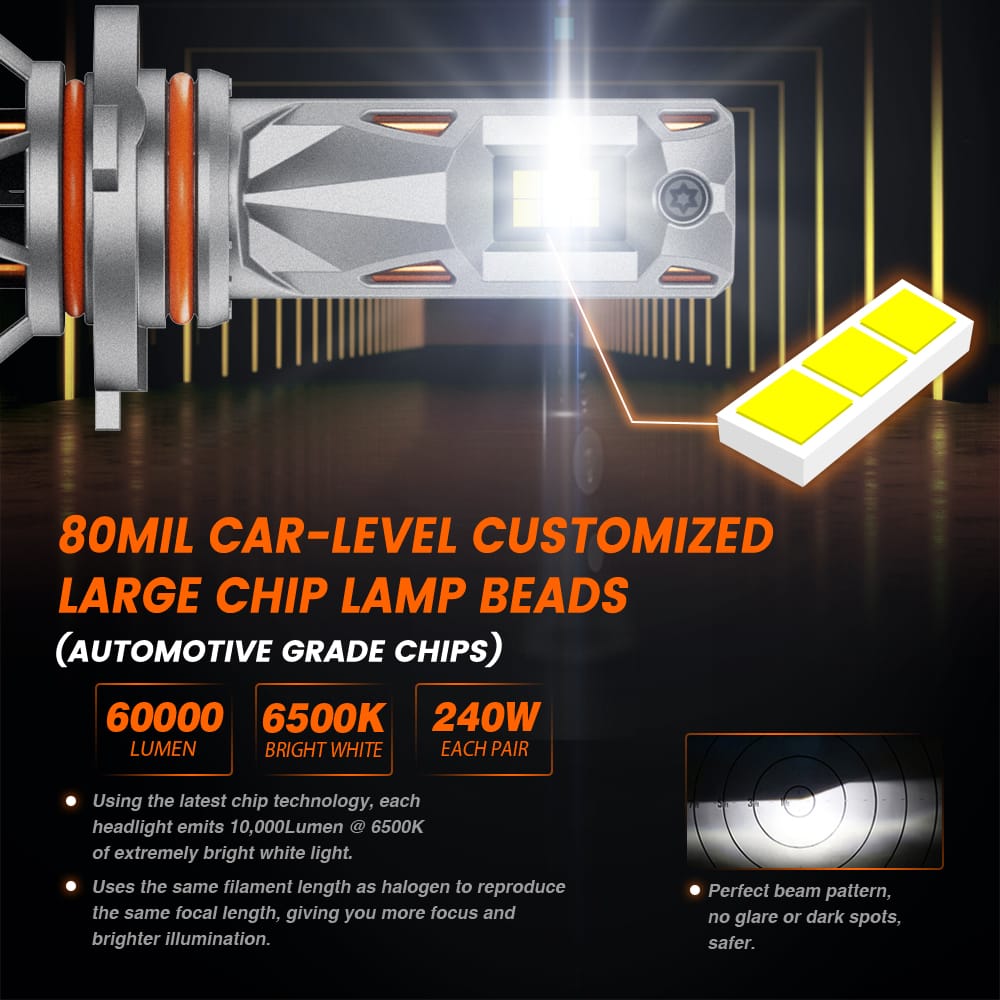 - Potężna matryca LED 80MIL: Sercem żarówek są powiększone, dostosowane do użytku samochodowego chipy o rozmiarze 80MIL. Zapewniają one skoncentrowany strumień światła o grubości centrum powyżej 1mm, co eliminuje ciemne obszary i maksymalizuje zasięg.
