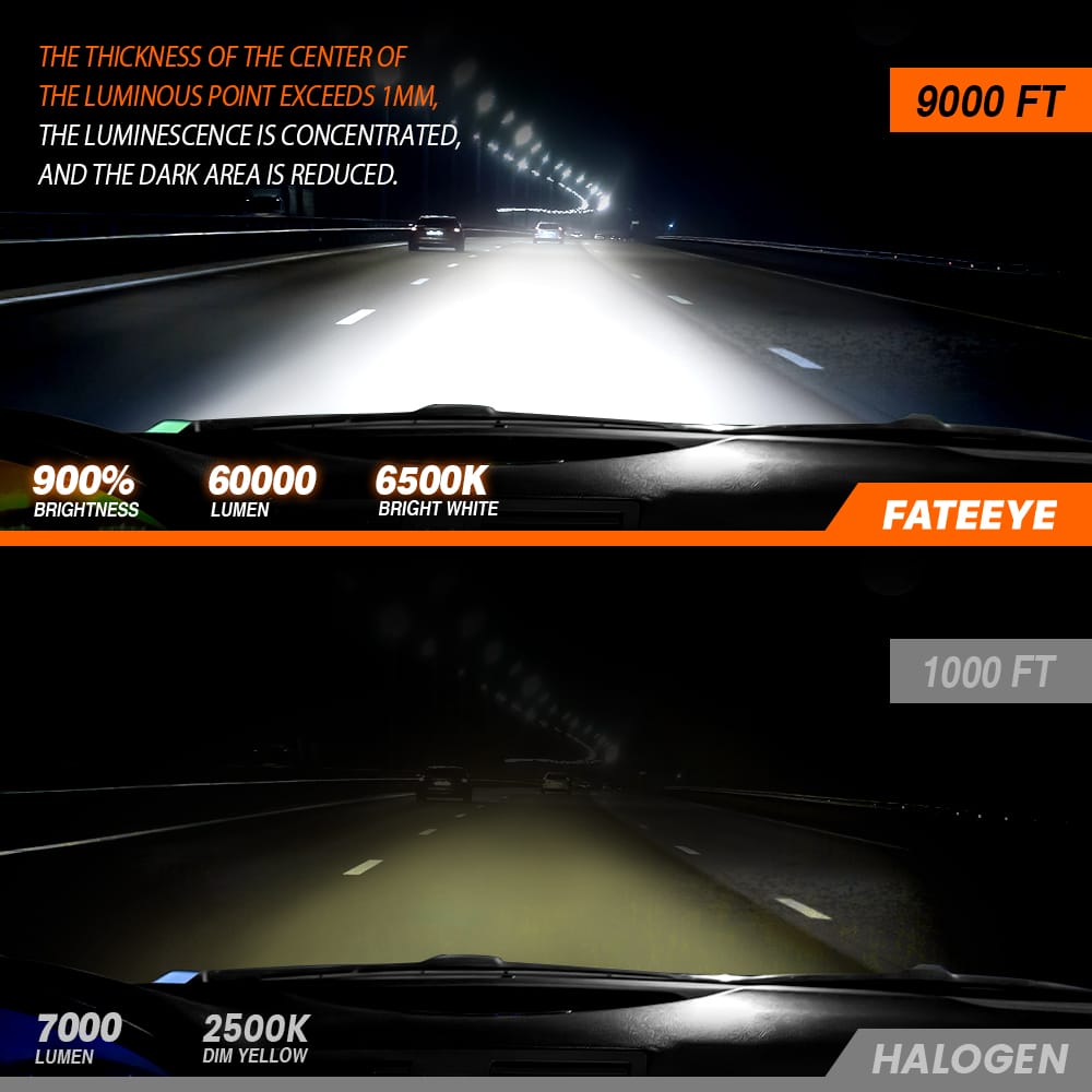 Przekształć swoje oświetlenie dzięki najnowszej generacji żarówek FATEEYE F27. Ten zestaw to prawdziwy gigant wydajności, oferujący jasność na poziomie 60,000 lumenów oraz moc 240W. Dzięki zastosowaniu specjalistycznych chipów klasy automotive, żarówki te są o 900% jaśniejsze od standardowych halogenów, zapewniając widoczność na dystansie do 2700 metrów (9000 stóp).