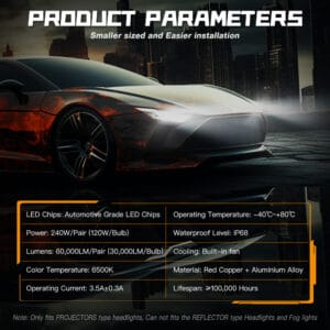- Jasność 60,000LM: Zestaw generuje niesamowitą ilość światła (30,000 LM na żarówkę), zamieniając noc w dzień. Barwa 6500K (zimna biel) zapewnia nowoczesny wygląd i lepszy kontrast widzenia.