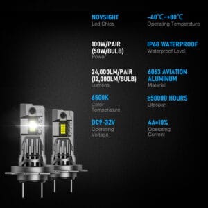 Mocne Żarówki LED H7 NOVSIGHT N99 – Zestaw 24 000 lm, 6500K (Cool White)