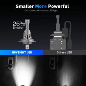 Zapomnij o skomplikowanych instalacjach i zewnętrznych modułach. Żarówki NOVSIGHT N99 to konstrukcja All-In-One. Wymiary są zbliżone do standardowych żarówek H7, co sprawia, że pasują do większości reflektorów samochodowych bez konieczności przerabiania dekielków. Inteligentny system Canbus zapewnia kompatybilność z 99,9% systemów elektronicznych pojazdów, minimalizując ryzyko błędu „spalonej żarówki”.