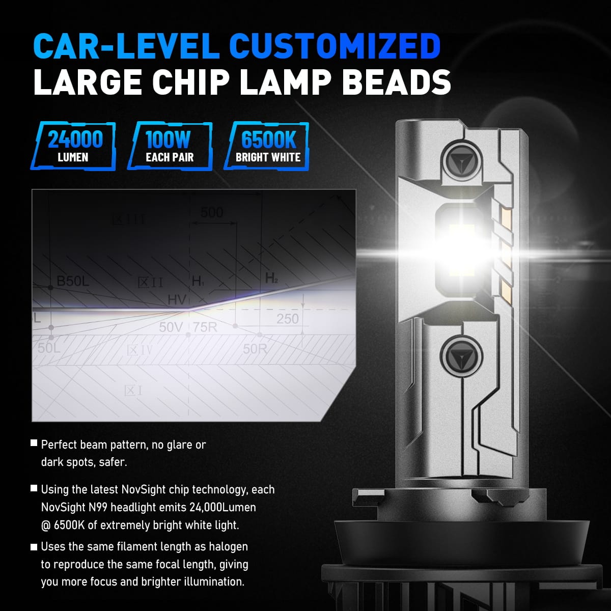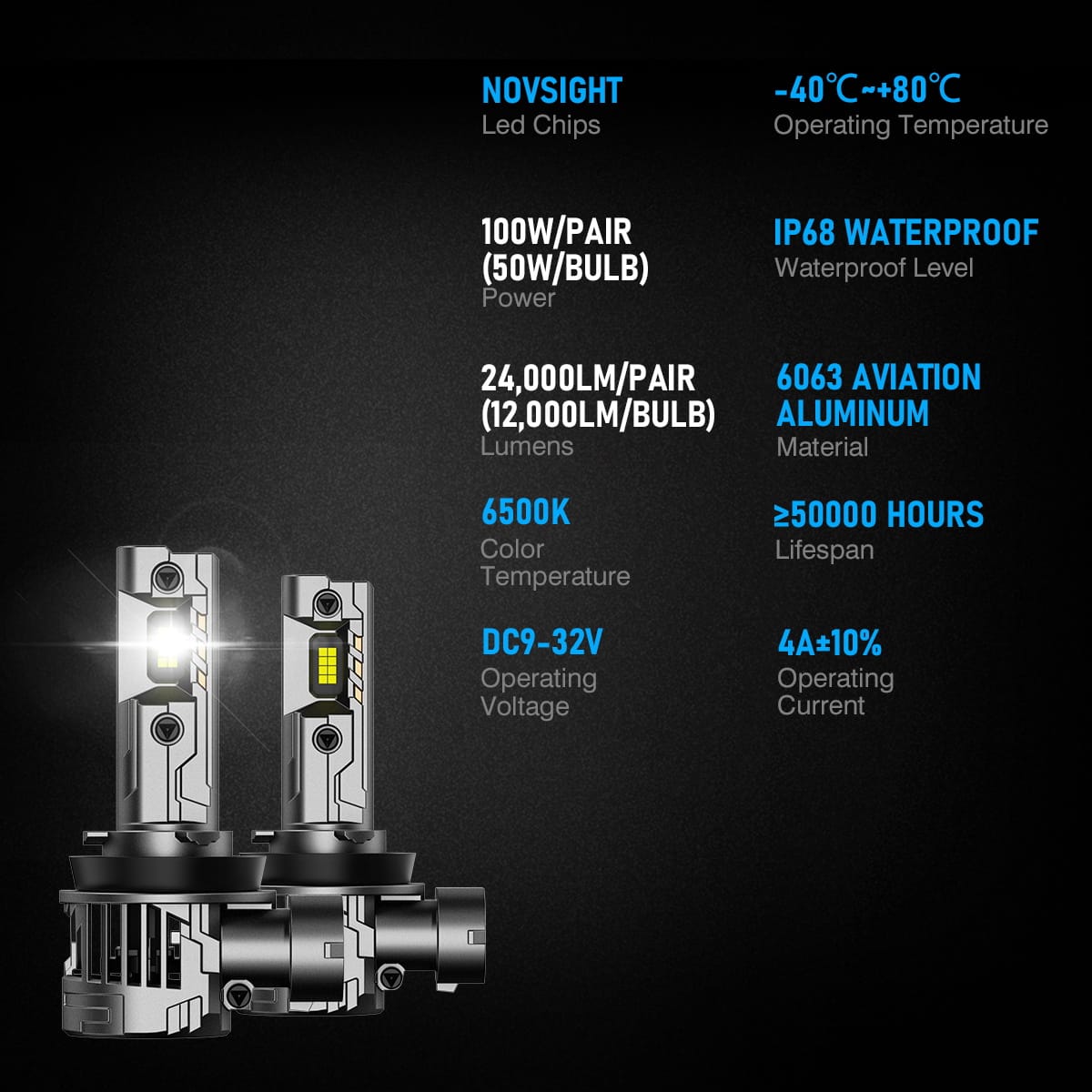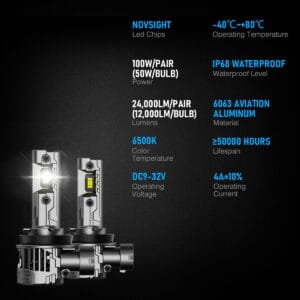 Żarówki LED H11 Novsight N99 – 24,000LM, 100W, +600% jasności