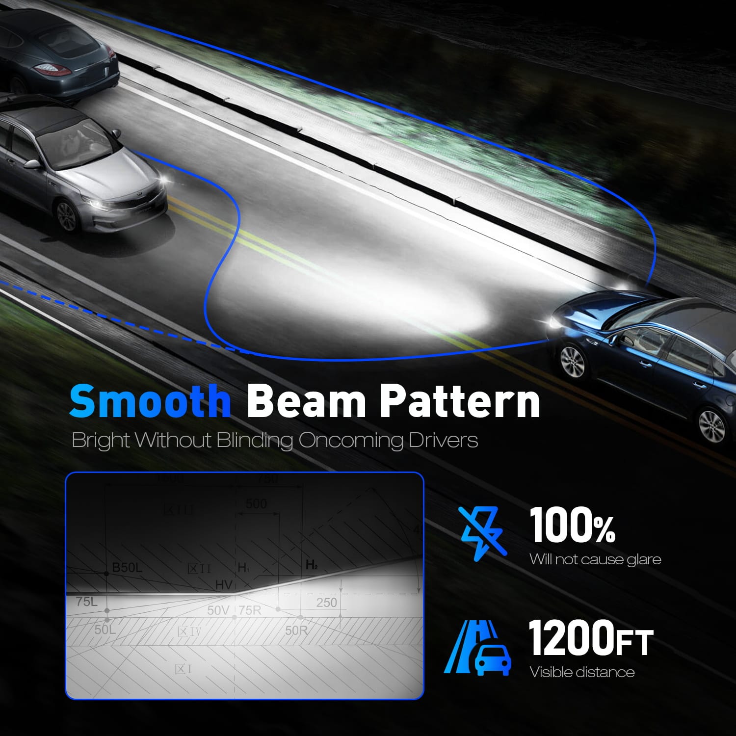 - Idealna linia odcięcia (No Dark Spots): Specjalna konstrukcja diod LED sprawia, że światło pada dokładnie tam, gdzie powinno. Nie tworzy ciemnych plam i, co najważniejsze, nie oślepia kierowców z naprzeciwka.