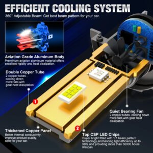 - Ulepszone Chipy LED 3570 CSP: Najwyższej jakości chipy LED klasy motoryzacyjnej zapewniają wyjątkową jasność i długowieczność.
