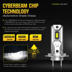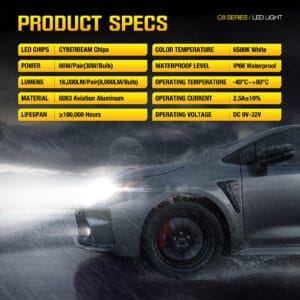 Żarówki LED H7 CyberBeam A900-C9-H7 oferują moc 30W na i świecą światłem 8000 LM na żarówkę. Światło barwowe wynosi 6500K. Są odporne na wodę, posiadają IP68. Pracują sprawnie w zakresie temperatur od -40 stopni do +80 stopni. Pobierają 2.5A (+/- 10%) i działają w zakresie napięcia od 9V do 32V. Żarówki LED H7 CyberBeam A900-C9-H7 dobry wybór – sprawdziliśmy je.