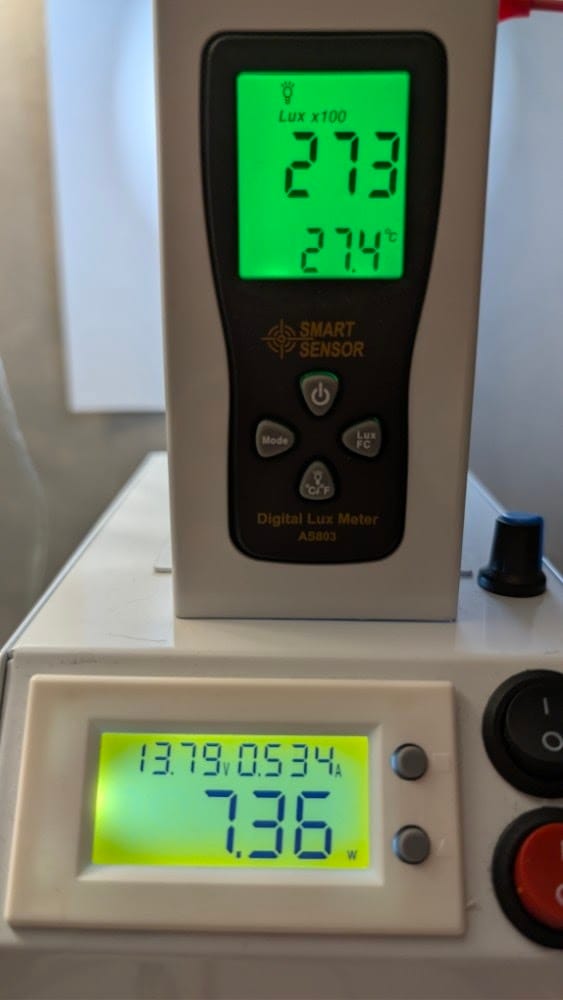 - Jasność (Lux): 27 300 lx (Wskazanie: 273 x100)